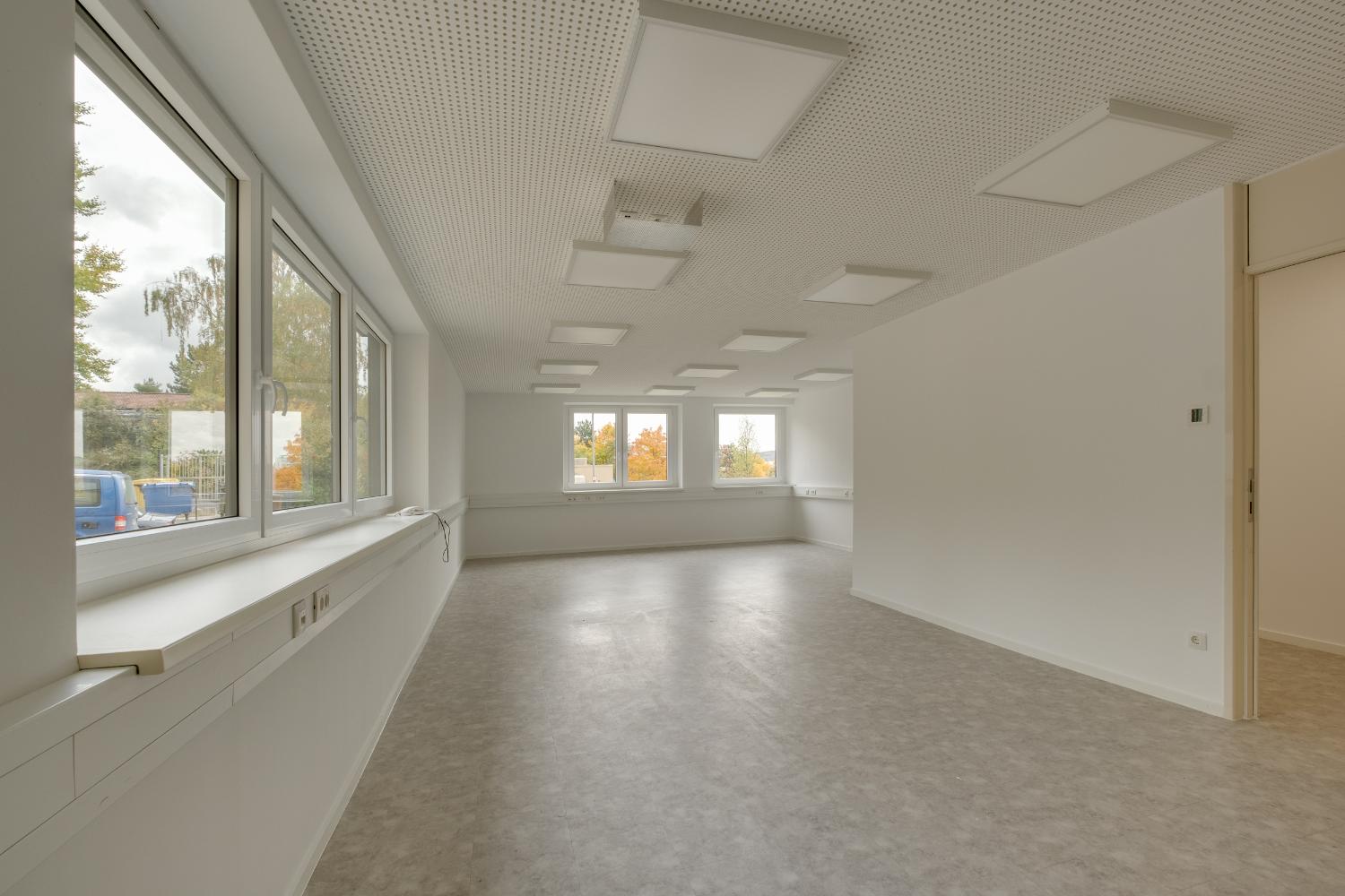 Helle Büroräume im Erdgeschoß eines Bürohauses:
