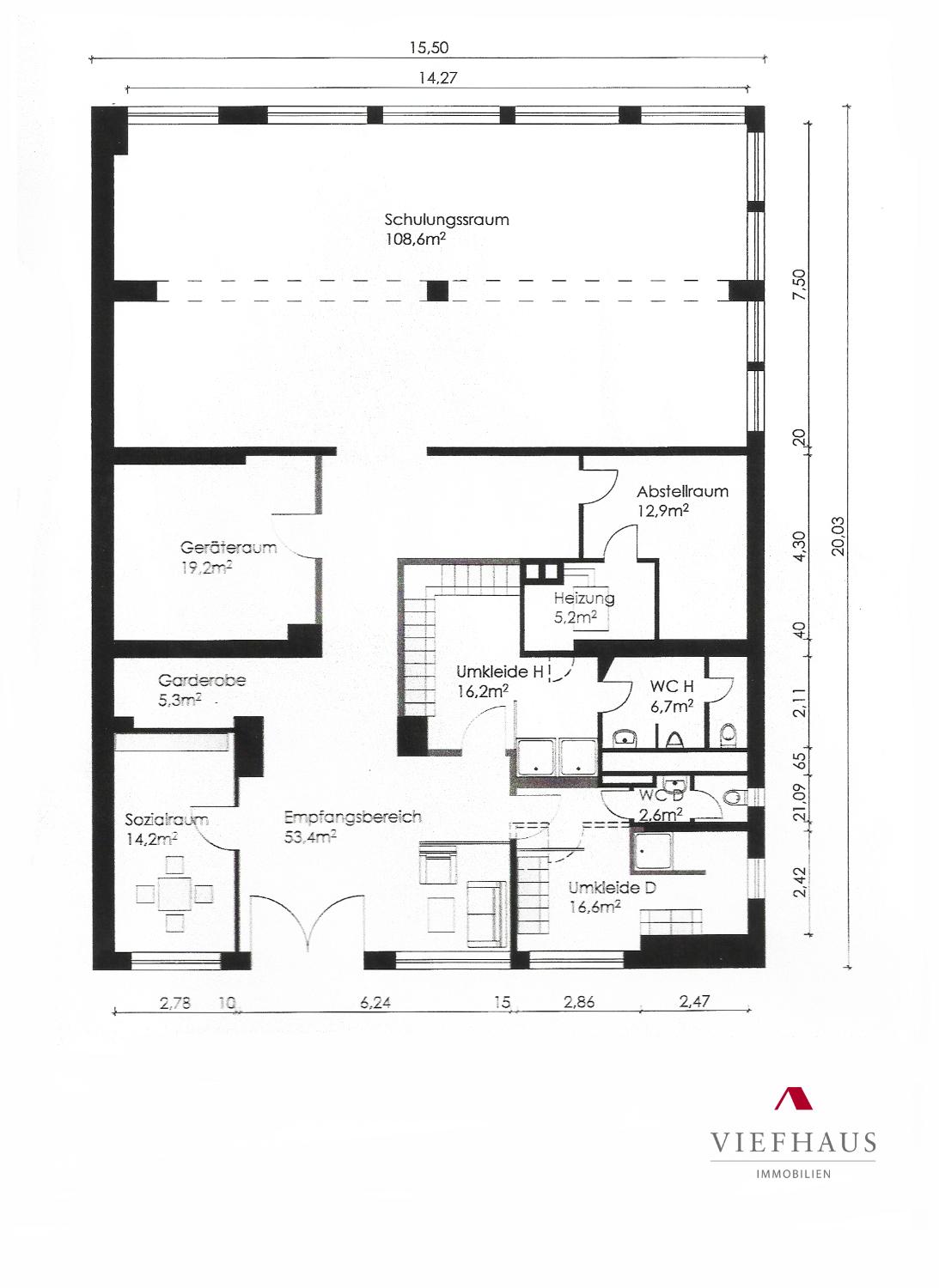 Dank der vorhandenen Umkleiden, Sozialräume und Abstellflächen eignet sich die Immobilie auch hervorragend für Schulungszwecke, Yoga oder Therapieangebote oder ähnliches.