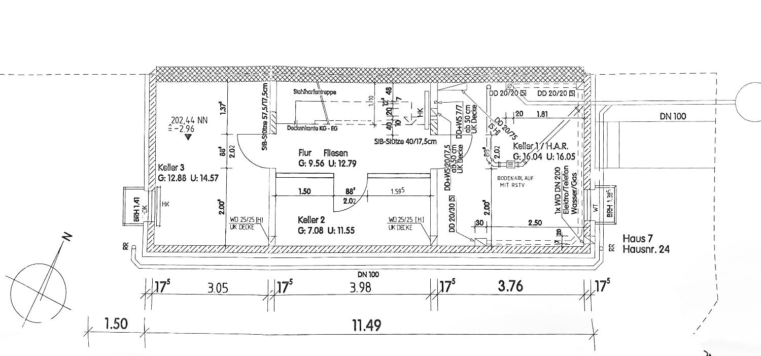 Das Haus ist komplett unterkellert, neben der Waschküche und einem Lagerraum gibt es ein Büro / Gästezimmer mit Tageslicht (Lichtschacht ausgehoben, dieser Raum wird mit zur Wohnfläche gezählt).