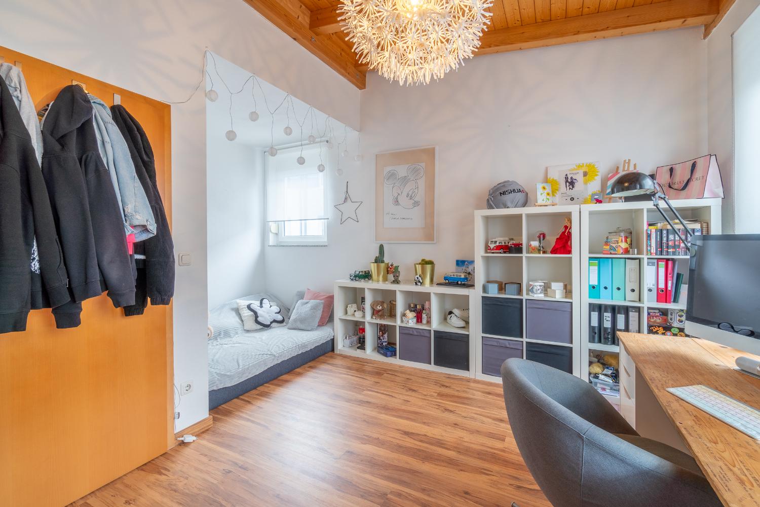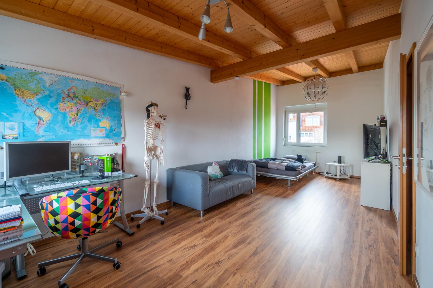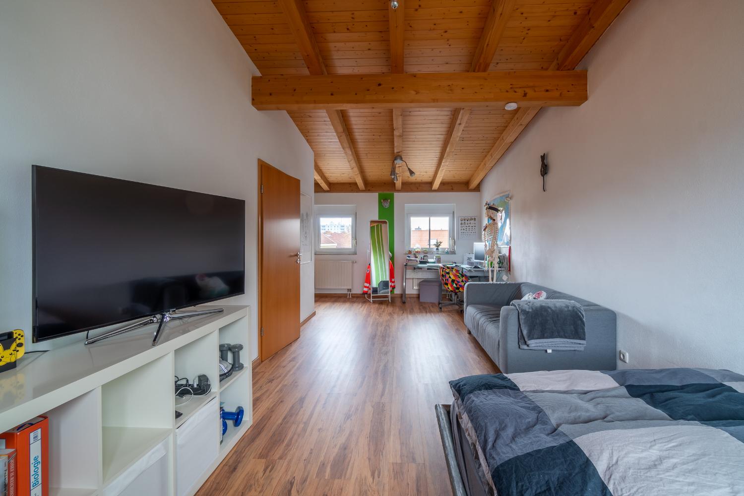 Im Dachgeschoß befindet sich ein weiteres, großes Schlafzimmer (könnte auch bei Bedarf in 2 kleinere Schlafzimmer umgebaut werden) sowie der Technikraum mit der Gasheizung.