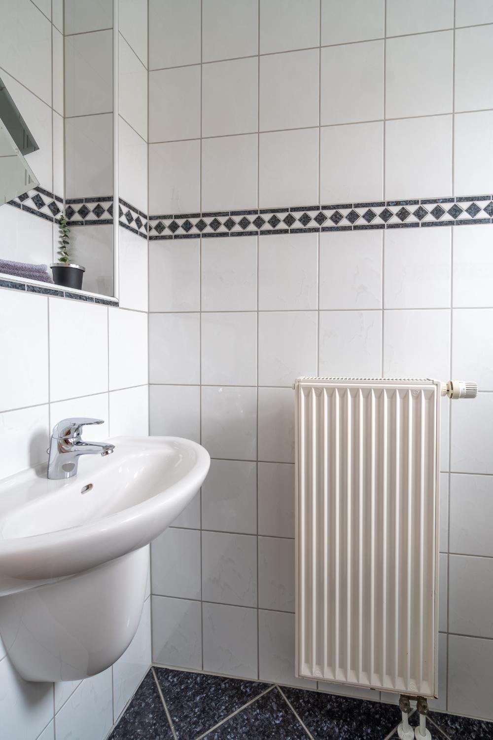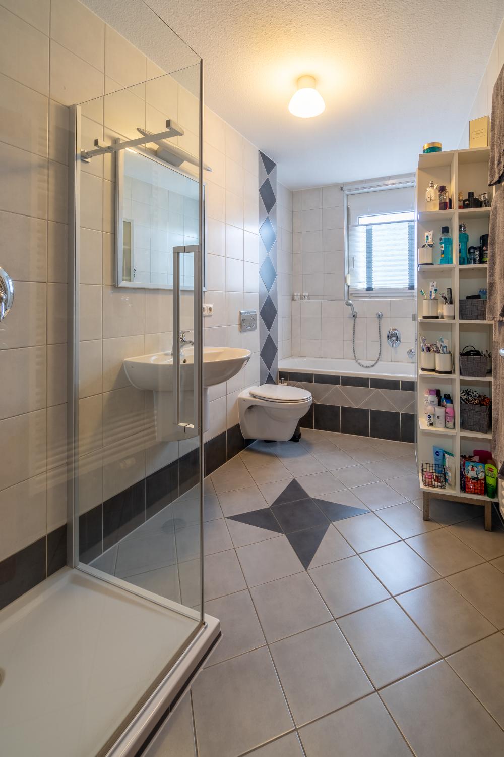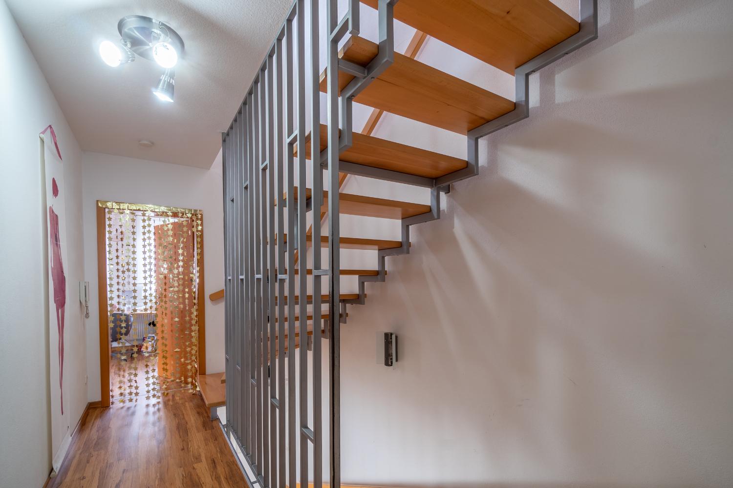 Über das Treppenhaus gelangt man in das 1. OG mit 2 Schlafzimmern und dem Tageslichtbadezimmer mit Dusche und Badewanne.