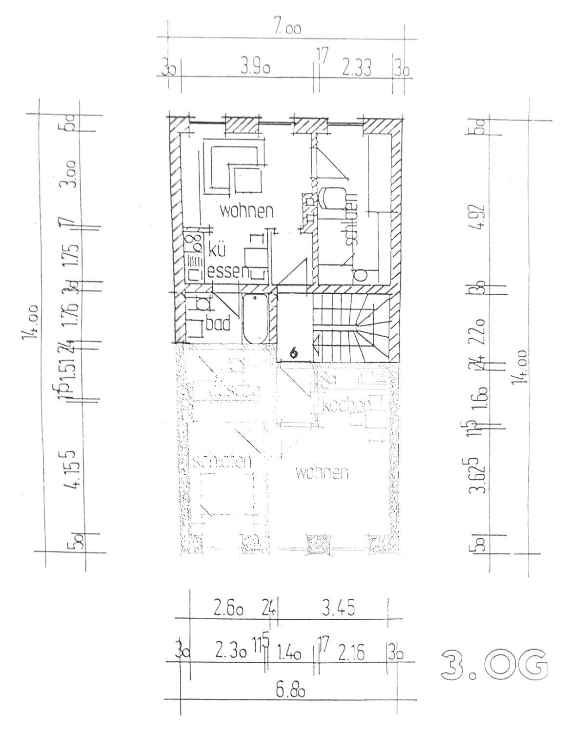 Die Wohnung befindet sich im 3. Obergeschoß und ist wie folgt aufgeteilt:
