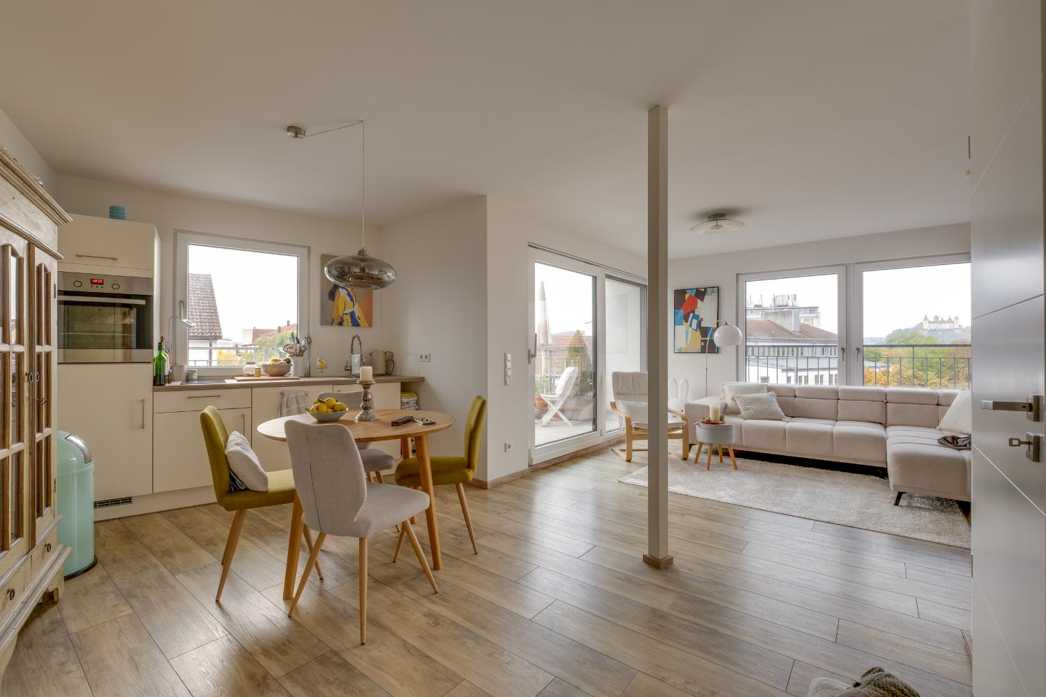 Dieses moderne Penthouse vereint stilvolles Wohnen mit einem einzigartigen Ausblick über die Dächer Würzburgs.