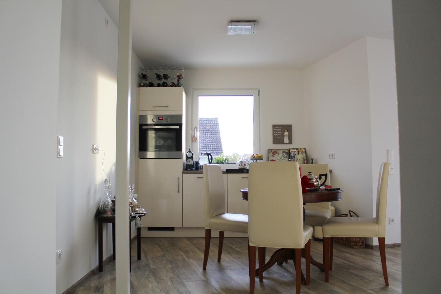 * abgetrennter Küchen-/Essbereich mit Einbauküche
