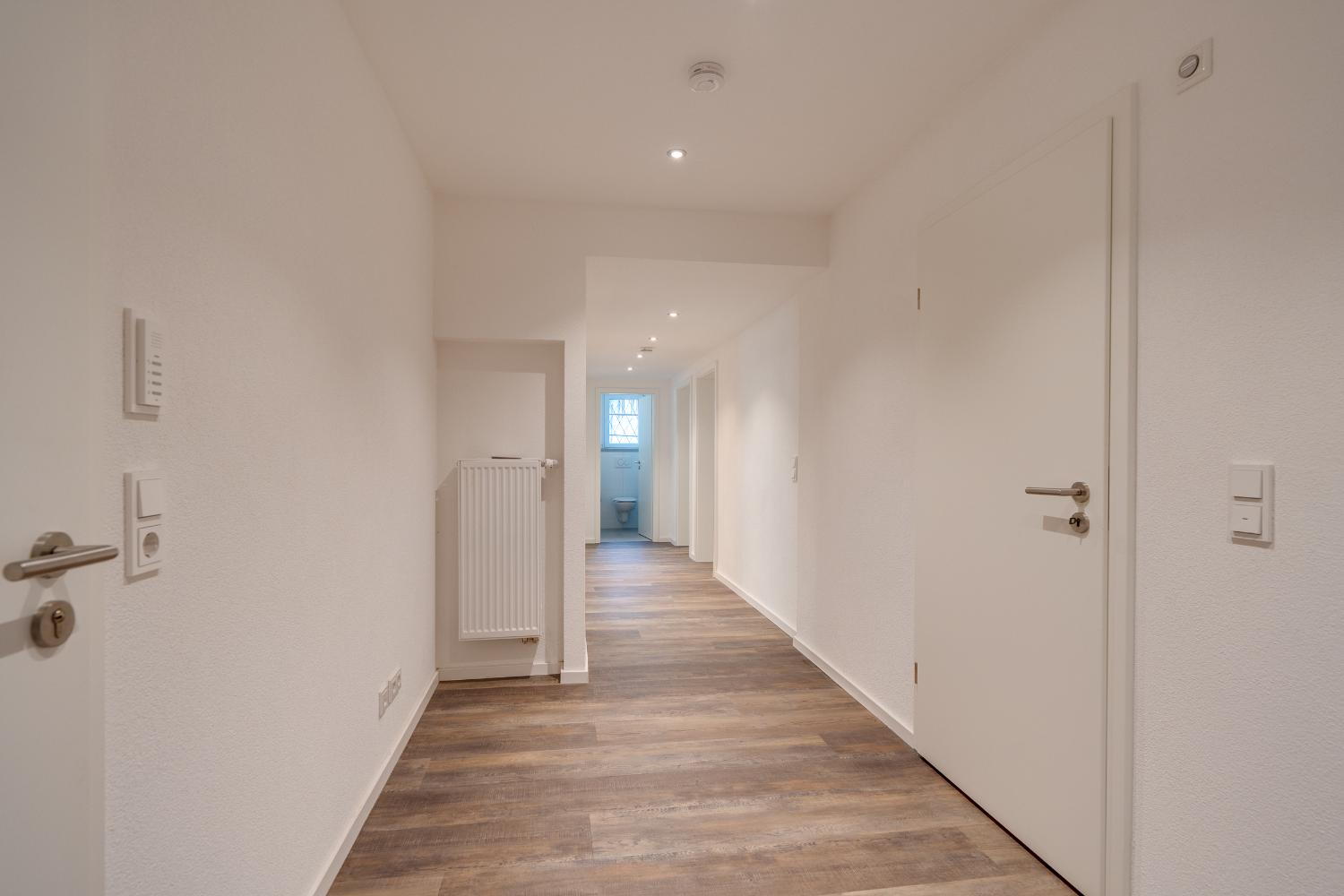 Die Wohnräume sind mit einem einheitlichen, modernen Bodenbelag ausgestattet und schaffen in Kombination mit den dezenten Farben eine ruhige, zeitlose Atmosphäre. Mehrere gut geschnittene Zimmer bieten flexible Nutzungsmöglichkeiten als Schlaf-, Kinder-, Gäste- oder Arbeitszimmer.