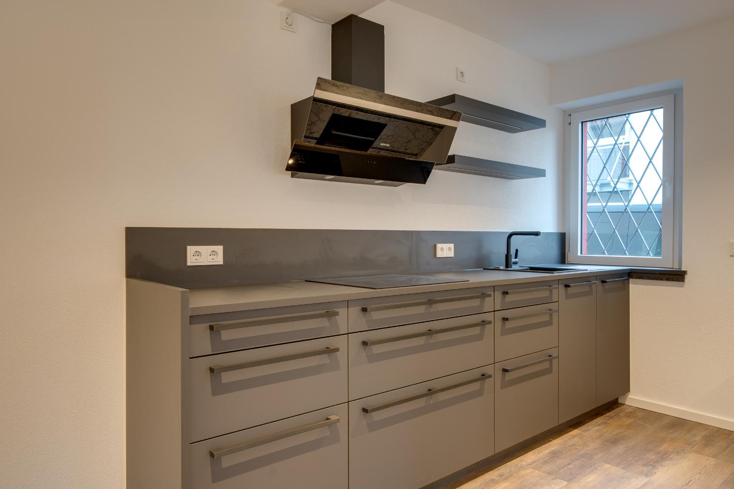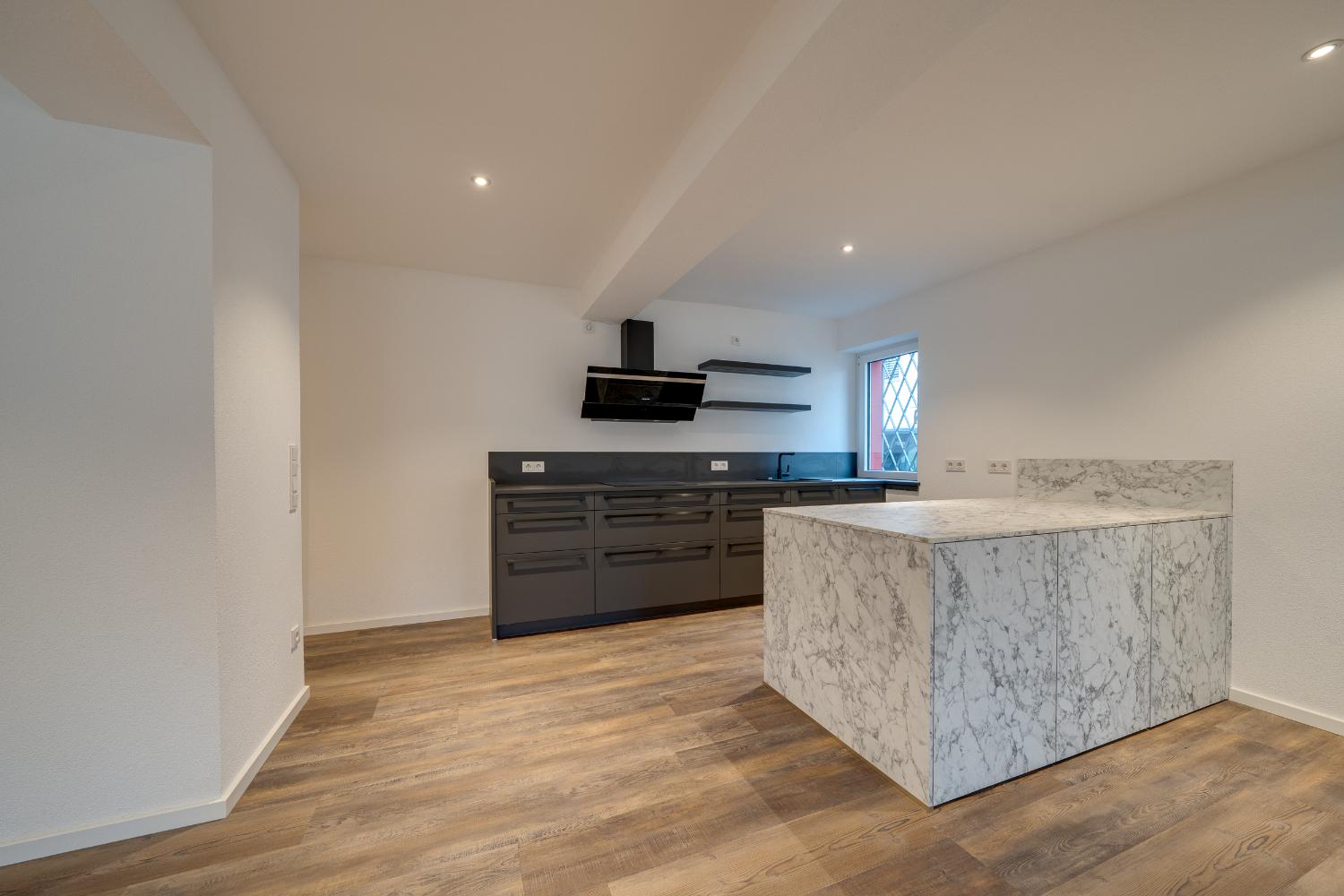 Der großzügige Wohn-, Ess- und Kochbereich bildet das Herzstück der Wohnung. Offen gestaltet und lichtdurchflutet, überzeugt dieser Bereich durch klare Linien, eine durchdachte Raumaufteilung sowie hochwertige Materialien. Die moderne Einbauküche mit Kochinsel fügt sich harmonisch in den Raum ein und bietet ideale Voraussetzungen für gemeinsames Kochen und geselliges Beisammensein.