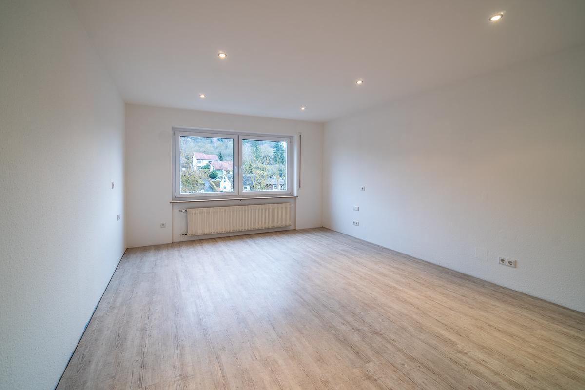 Die 2021 umfassend sanierte 2-Zimmerwohnung befindet sich im Erdgeschoss eines gepflegten Dreifamilienhauses in ruhiger Wohnlage von Randersacker.