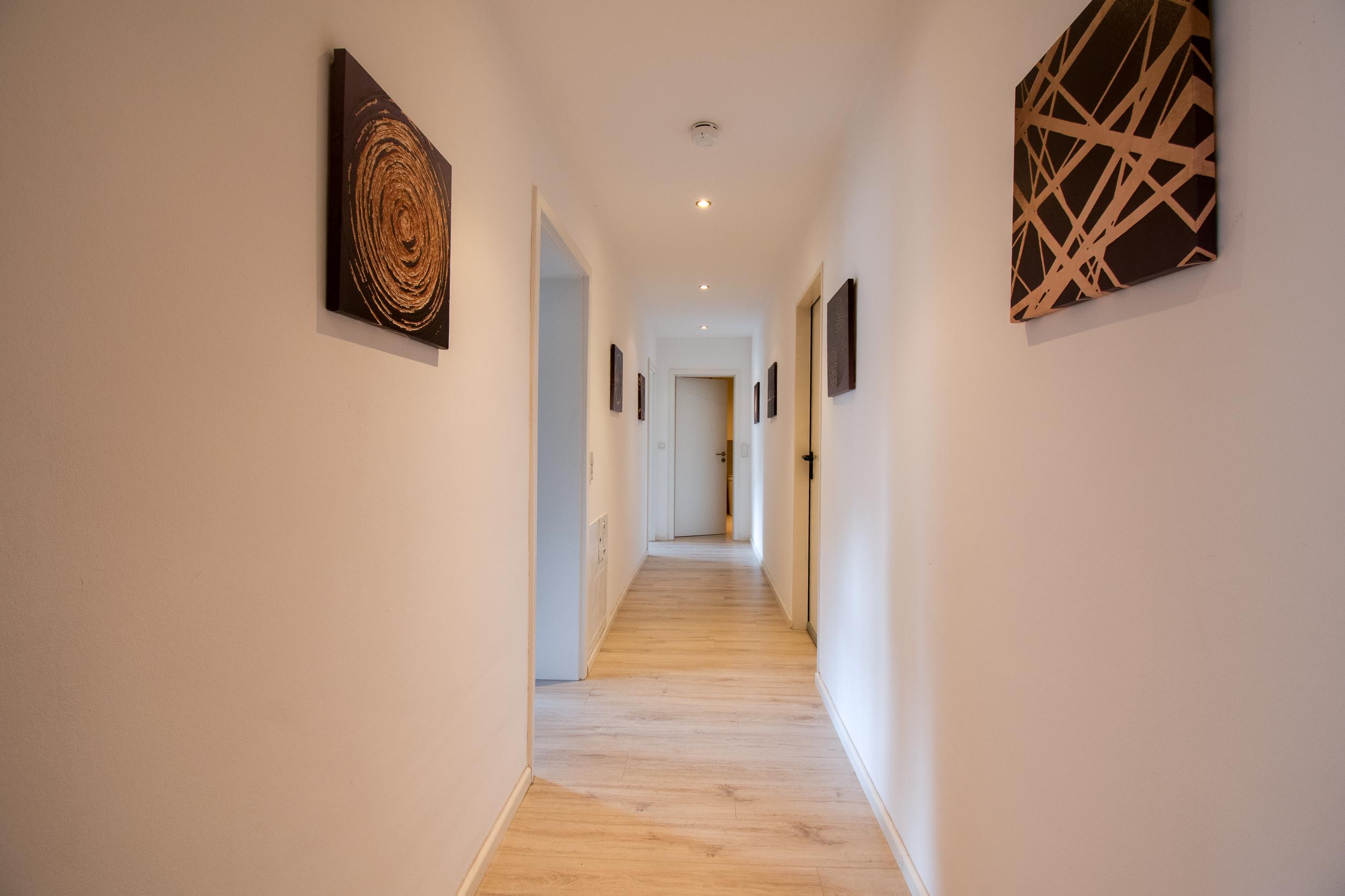 Bereits beim Betreten überzeugt die Wohnung durch ihre helle, freundliche Atmosphäre sowie eine durchdachte Grundrissgestaltung. Ein praktischer Windfang bietet Platz für eine Garderobe und geht in einen großzügigen Flur über, der alle Räume erschließt.